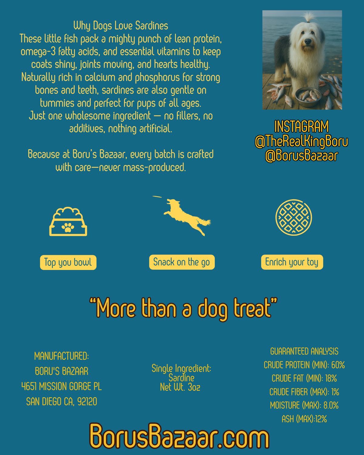 5. **Natural and Nutritious**: Dehydrated sardines are a natural and minimally processed treat, providing dogs with a healthy snack option free from artificial additives or preservatives.